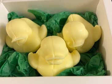 Did you know that a group of ducks in water are called a raft? So here we have a raft of 3 little duckies!